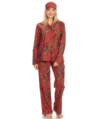 WHITE MARK 3-piece Cozy Pajama Set In Red Cheetah