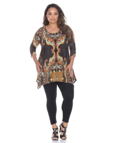 WHITE MARK Plus Marlene Womens Drapey Printed Tunic Top In Multi