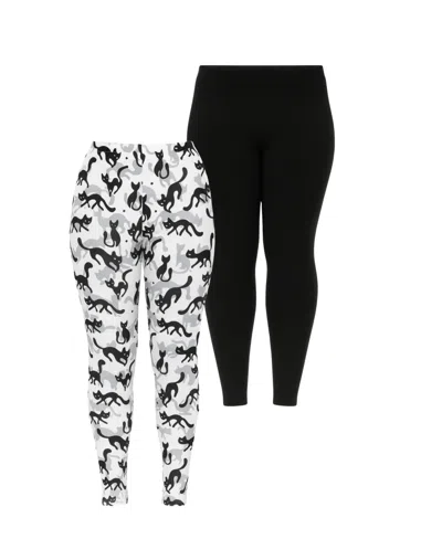 WHITE MARK Plus Size Cat Print Legging Pants, 2-pack In Multi