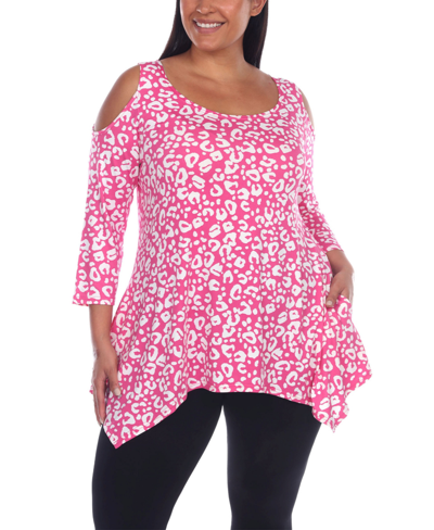 WHITE MARK Plus Size Leopard Cold Shoulder Tunic Top In Multi