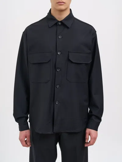 WHITE SAND Wool Blend Overshirt In Blue