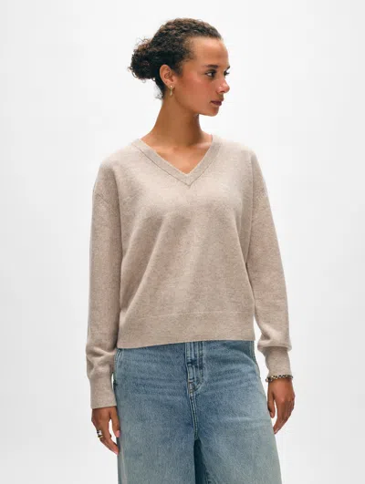 Cashmere V Neck Sweater In Sand Wisp Heather