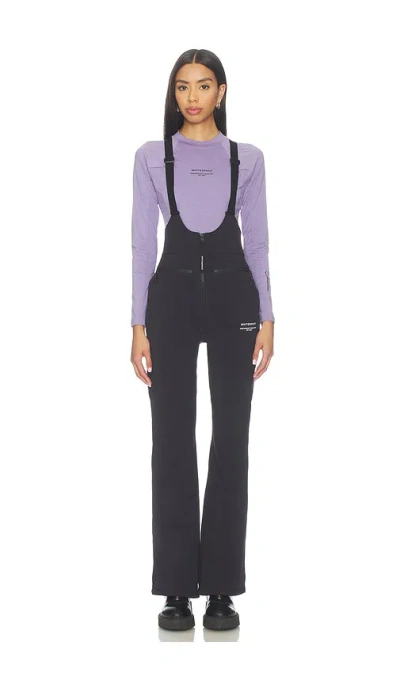 Whitespace High Waisted Riding Bib in Black. Size M. Also in XS, S, L, XL. Whitespace High Waisted Riding Bib in Black. Size XS, S, L, XL. Self: 86% recycled polyester 14% elastane Lining: 91% recycled polyester 9% elastane. Made in Vietnam. Machine wash cold. Front zipper closure. Front zip pockets. Midweight ripstop fabric. Adjustable back band. Split hem at legs. WTES-WC10. 25001WB.