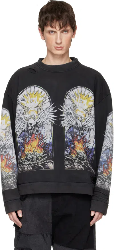 black graphic print distressed detailing crew neck long sleeves ribbed trims