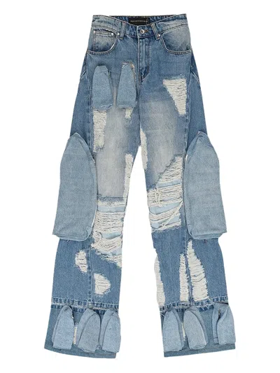 WHO DECIDES WAR Multi-pocket Distressed Jeans In Blue