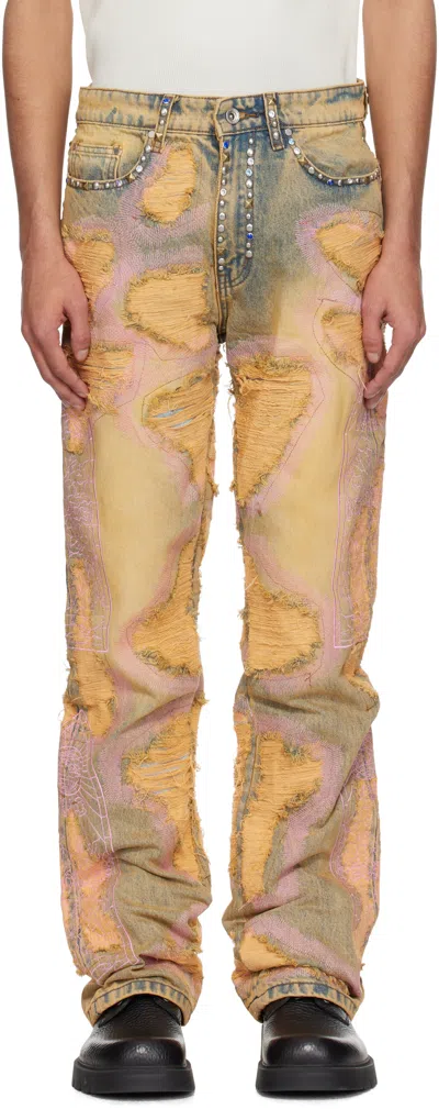 WHO DECIDES WAR Orange Stud Distressed Jeans In Multi