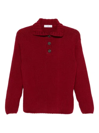 ruby red ribbed knit button placket collared neckline long sleeves