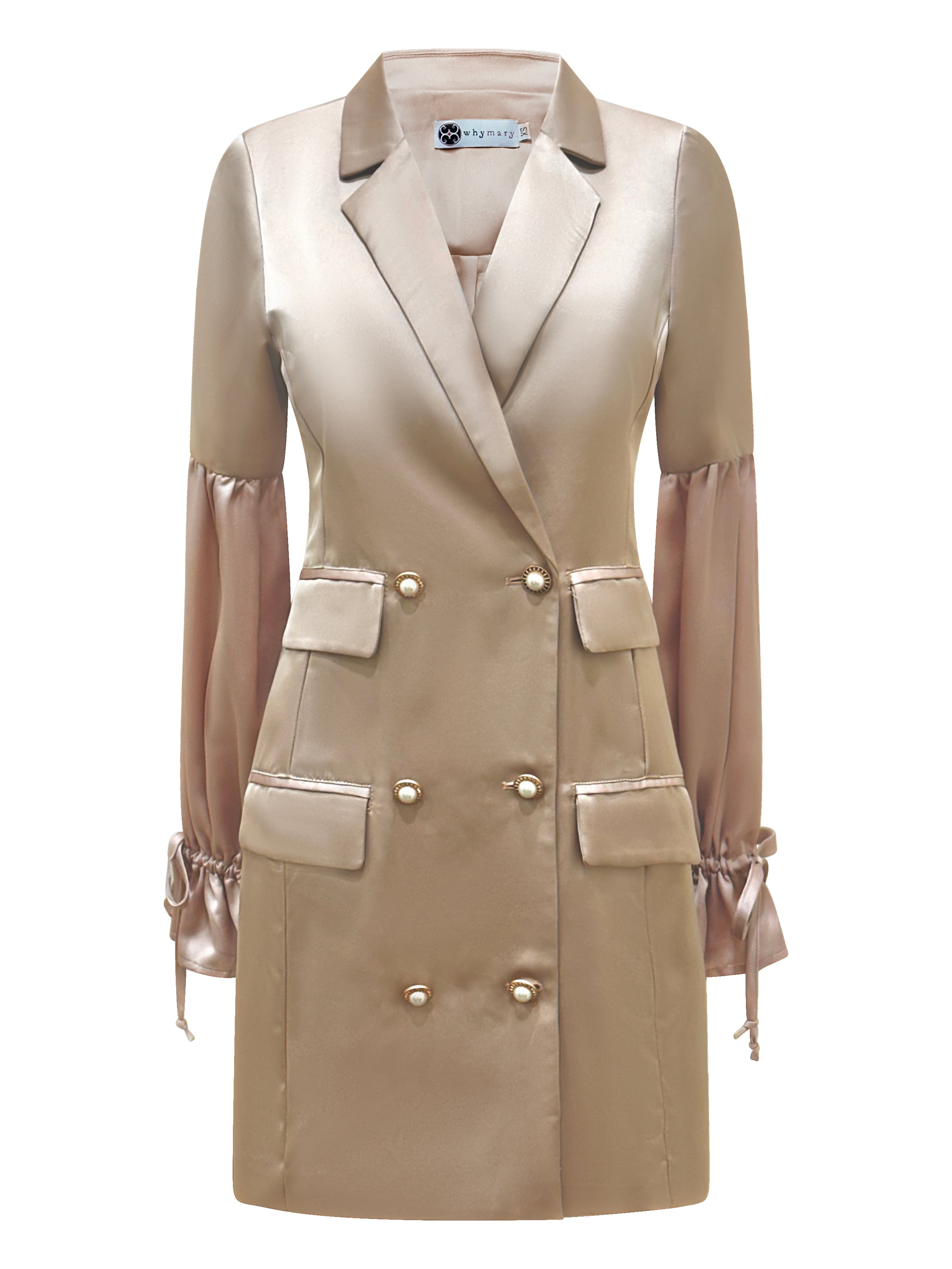 WHY MARY Women's Neutrals Double Breasted Coat Dress In Nude Satin - Champagne Crush In Brown/white
