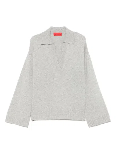 Hellgrau Schlitz am Ausschnitt tiefe Schulter gerippte Bündchen und Saum