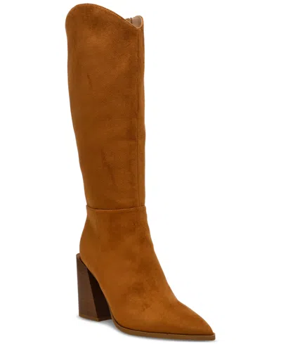 Tati Stacked-heel Boots, Created For Macy's In Cognac Micro