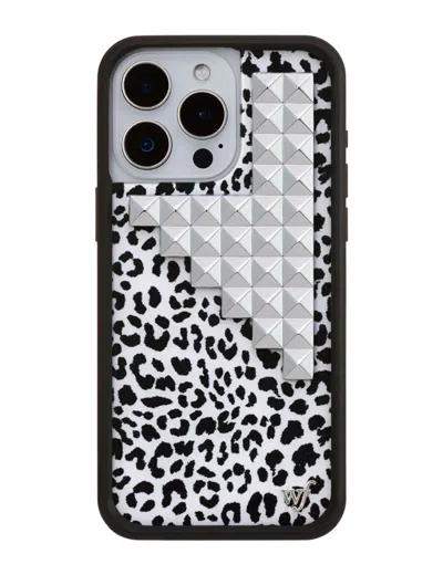 Our Snow Meow Stud iPhone case brings back our OG studs to our iconic black and white leopard print. Whether you're curled up with a hot drink or out for a winter adventure, this studded case adds just the right amount of edge to your look. Don't miss out on this limited edition case! Snag it before it's gone and let your phone feel as stylish as your winter wardrobe. One-of-a-kind, limited edition phone case Durable protective outer sandblasted polyurethane black rubber bumper Jeweled with our custom signature silver "wf" emblem All-around protection with raised bumper in front of phone adds layer of screen protection No two cases are exactly alike, each one is handmade, making every Wildflower case unique, just like you. **Due to our handmade process, colors may appear different in person than they do on our website**