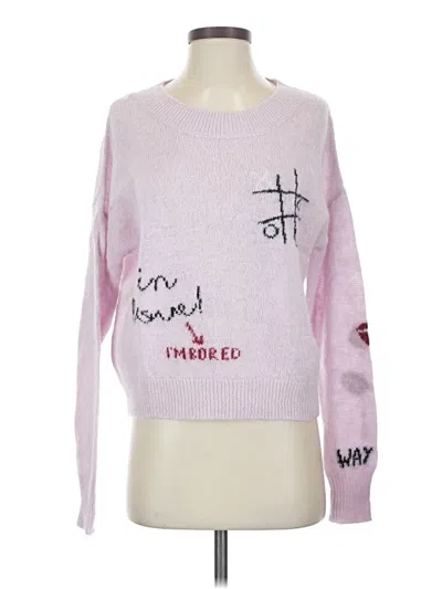 Wildfox Pullover Sweater, Size: X-Small. Item Details: Pink, Graphic Pattern, Crew Neck, Long Sleeve, Embroidered, Women's Tops, Acrylic/Wool/Alpaca