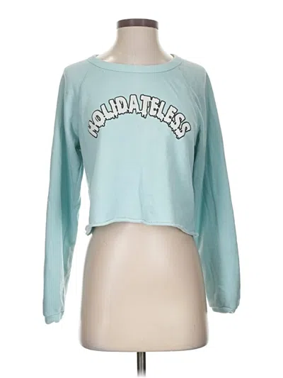 Wildfox Sweatshirt, Size: X-Small. Item Details: Teal, Scoop Neck, Long Sleeve, Women's Tops, Cotton/Polyester