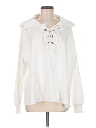 Wildfox Sweatshirt, Size: Medium. Item Details: White, Tie Neck, Long Sleeve, Lace Up, Women's Tops, Cotton/Polyester