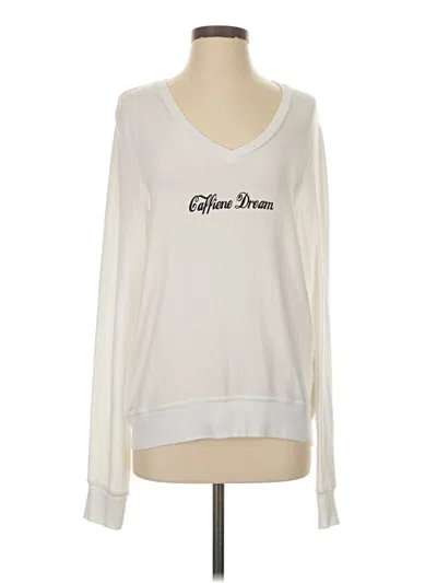 Wildfox Sweatshirt, Size: Small. Item Details: White, V Neck, Long Sleeve, Women's Tops, Rayon/Polyester/Spandex