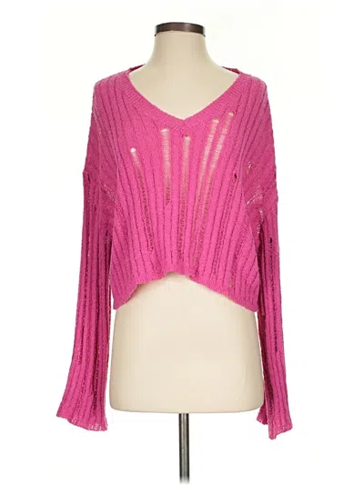 Willow & Root Long Sleeve T Shirt, Size: Small. Item Details: Pink, Plunge Neckline, Long Sleeves, Women's Tops
