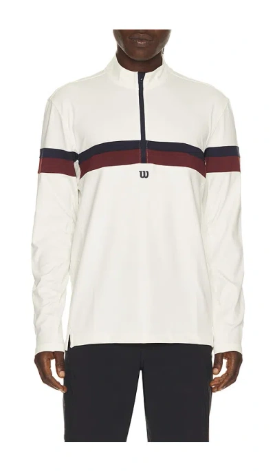 Wilson Elevate Performance Half-Zip in Tan. - size L (also in S, M) Wilson Elevate Performance Half-Zip in Tan. - size L (also in S, M) 79% polyester 21% elastane. Machine wash. Partial front zipper closure. Notched hem. Midweight jersey fabric. WSON-MS4. WM00204531GYC+.