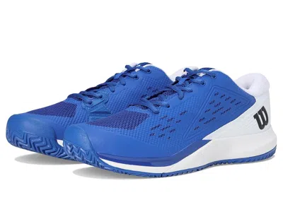 Wilson Rush Pro Ace - Men's Tennis Shoes : Deja Vu Blue/White/Black : Elevate your sporty style wearing Wilson Rush Pro Ace Sneakers that are designed with a synthetic upper and laces for adjustability. The sneakers are crafted with a textile lining, removable textile footbed and EVA midsole. ; Round toe shape. ; Rubber outsole. ; Imported. | Wilson Rush Pro Ace Men's Tennis Shoes Deja Vu Blue/White/Black : 8 E - Wide, Synthetic