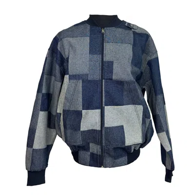 A modern take on the classic bomber, crafted in a patchwork denim fabrication with a graphic block pattern in deep indigo and soft grey tones. Designed for effortless everyday wear, it features a clean ribbed collar, ribbed cuffs and hem for structure, plus a full front zip for easy layering. Finished with practical front pockets and a relaxed silhouette that works across seasons Hand wash or gentle cycle. Wear it proudly. Denim 100%