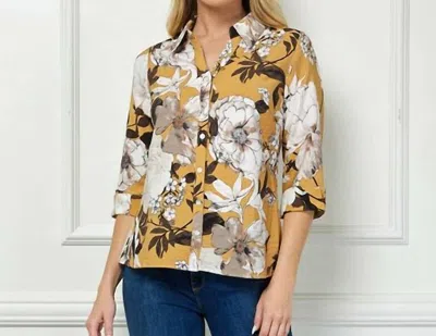 WINSLOW COLLECTION Floral Print Button Down Blouse In Mustard/brown In Multi