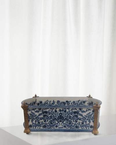 Handcrafted of porcelain and brass Approx. 16"L x 9.8"W x 6.2"T Wipe clean Imported