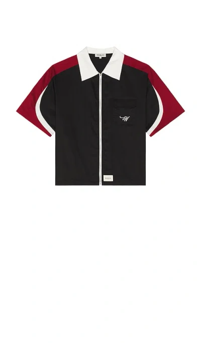 Wish Me Luck Work Zip Up Top in Black. Size L, M, XL/1X. 100% cotton. Machine wash. Front zipper closure. Chest flap pocket with logo detail. Lightweight poplin fabric. WIME-MS17. WZUT.