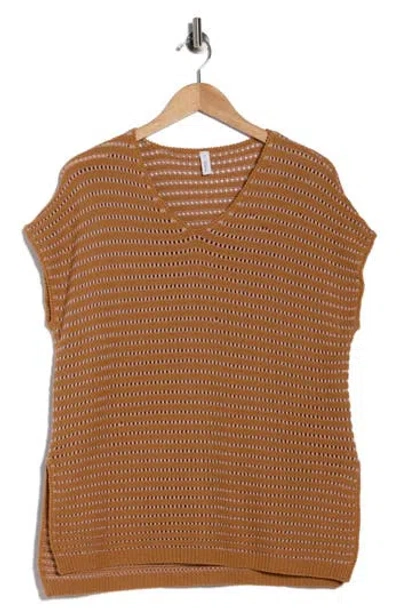 WISHLIST Open Knit Dolman Sleeve Split Seam Sweater In Brown