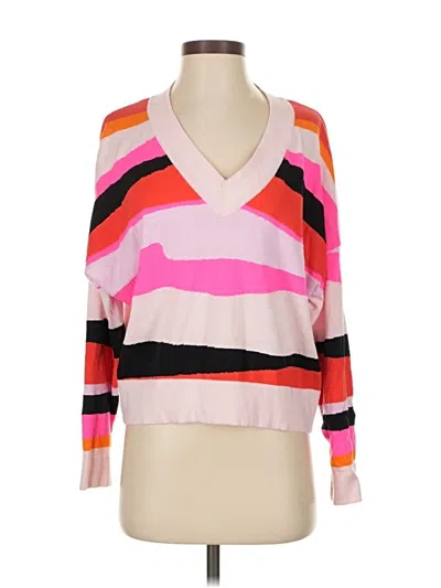 WISPR Pullover Sweater, Size: Small. Item Details: Pink, Stripes Pattern, Plunge Neckline, 3/4 Sleeve, Women's Tops, Cotton/Nylon/Silk