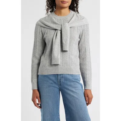 WIT & WISDOM Cable Stitch Twofer Tie Sleeve Sweater In Gray