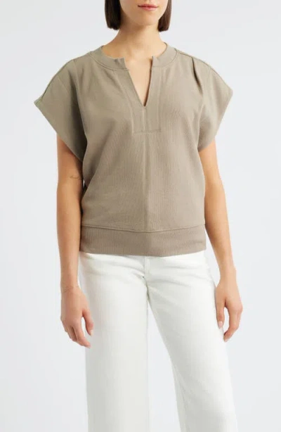 WIT & WISDOM Extended Shoulder Notch Neck Top In Brown