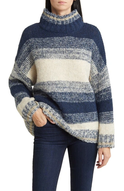 Ombré Stripe Turtleneck Sweater In Navy Multi