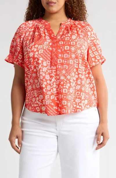 WIT & WISDOM Print Puff Sleeve Top In Papaya Punch Multi