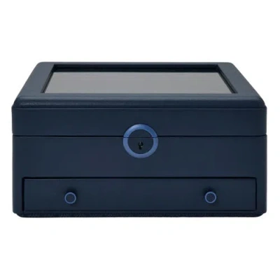 Earth Watch Stand Box with glass lid and a single drawer, has an apple leather exterior with matt metallic hardware with lock and key. Inside a recycled satin jacquard interior featuring WOLF Signature pattern is a retractable watch stand for two watches and multiple storage compartments for watches and valuables. The single drawer has storage for jewellery and cufflinks with two watch strap sections. Lock and key security Retractable watch stand for 2 watches Drawer with multiple storage compartments Glass lid Presented in 190th anniversary limited edition packaging