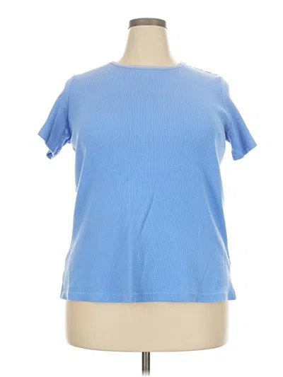 Woman Within Active T Shirt, Size: 18. Item Details: Blue, Mock Neckline, Short Sleeve, Frayed Edges, Women's Activewear, Cotton/Polyester