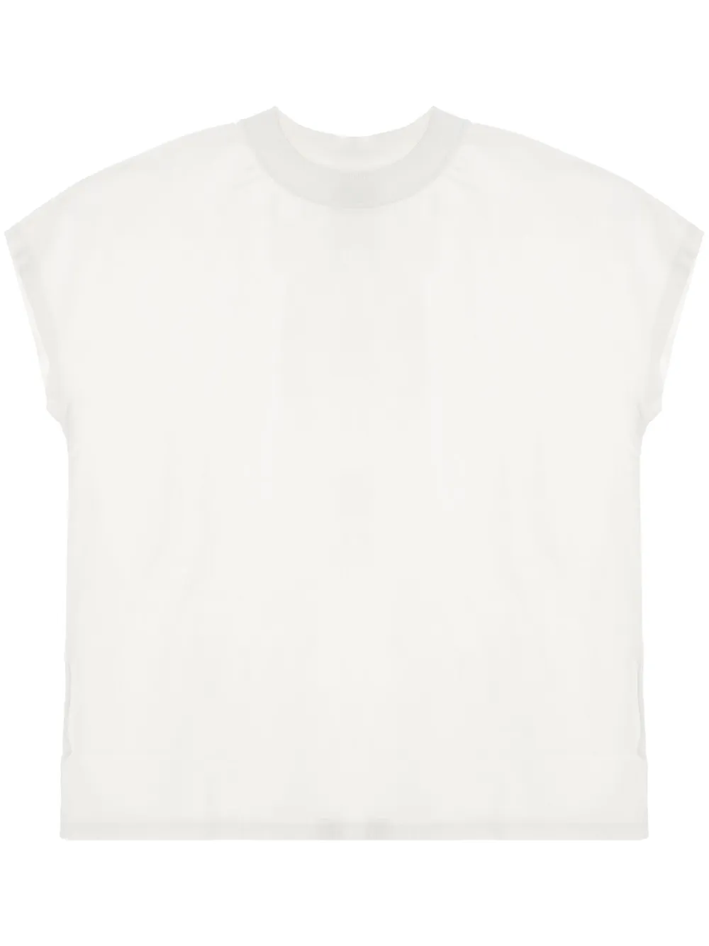 white cotton jersey texture crew neck cap sleeves straight hem