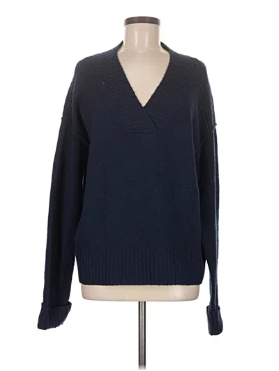 wonderly Pullover Sweater, Size: Medium. Item Details: Blue, Solid Pattern, V Neck, Long Sleeve, Velvet, Women's Tops, Polyester/Nylon/Spandex