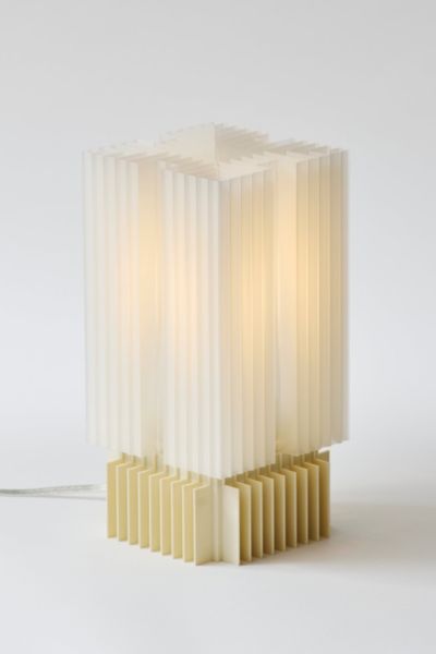 This product is made to order. Please allow 3 weeks lead time. The Brut Lamp contrasts our original design, the Wavy Lamp - trading biomorphic curvature for the harsh geometry of Brutalist architecture. u00a0Initially influenced by Carlo Scarpa's work, the Brut Lamp weaves in textures reminiscent of aluminum extrusions and other industrial materials. Content + Care Recycled PETG + PLA body + diffuser Transparent TPE cord Bulb (included): 4W, E12, 2700K (soft warm white), non-dimmable LED LED bulb only Wipe down with damp microfiber cloth if necessary (unplug lamp before doing this) This is a fragile item - treat with love! Imported Size 11" H x 6.5" D 1.3 lbs Wooj Design The Brut Lamp in Eggshell at Urban Outfitters