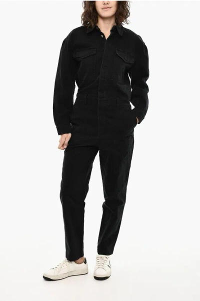 Cotton Twill Jumpsuit With Logoed Buttons In Black
