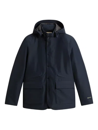 WOOLRICH Hooded Buttoned Jacket In Blue