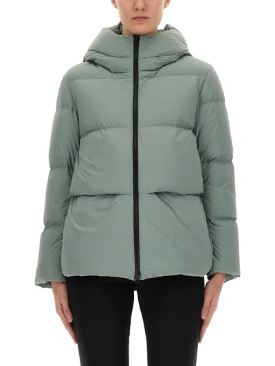 sage green quilted design hooded neckline front zip fastening long sleeves
