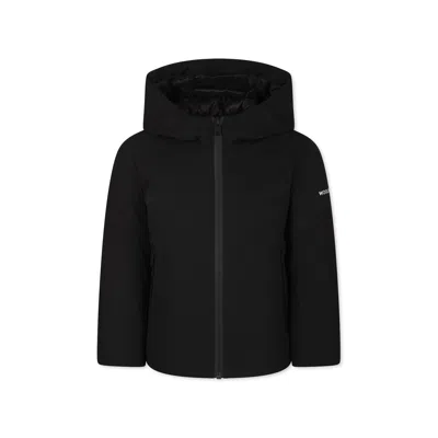 Color: Black Lightly padded, long-sleeved, black jacket with hood, front zip fastening, side zip pockets, elasticated cuffs and drawstring hem. It is embellished with a logo on the sleeve. 100% Polyester. Hand wash.