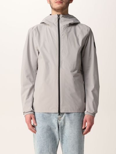 Sporty style Hood Technical fabric Central zip closure Long sleeves with elasticated cuffs Straight hem Logo on the sleeve