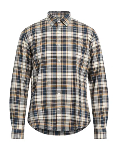 plain weave, brand logo, multicolor pattern, tartan pattern, classic neckline, long sleeves, button closing, no pockets, front slit, small sized , Color: Blue , Size: L