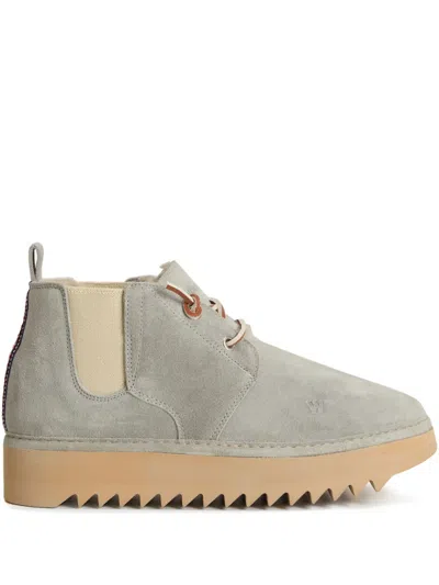 WOOLRICH Suede Leather Ankle Boots With Pull Tab In Gray