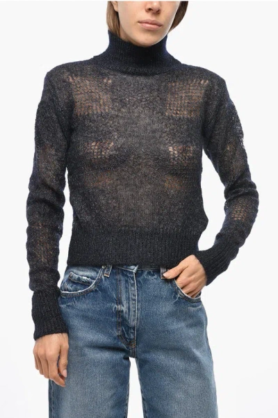 Turtleneck Open Work Mohair Blend Sweater In Gray