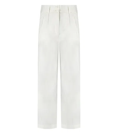 Woolrich trousers made of white cotton poplin. Pleats on the front, zip and button closure, and elastic insert at the waist. French pockets on the sides and welt pockets on the back. Regular fit, straight leg. The model is 178 cm tall and is wearing size 27. Composition: 100% cotton.