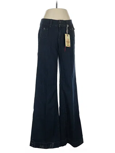 Worn Jeans, Size: 8. Item Details: Blue, Wide Leg, Long, Palazzo, Mid/Reg Rise, Women's Bottoms, Cotton/Elasterell