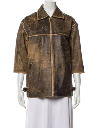 Pre-owned Leather Printed Jacket In Brown