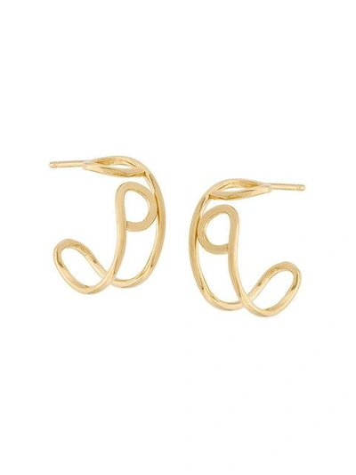 Belgian fine jewellery designer duo, Wouters & Hendrix draw on powerful symbolism for their latest Technofossils 2.0 Collection. Magical circles, amulets as well as sun and moon symbols stand side by side with intuitive signs. A collage of both archaic and hypermodern elements result in this Technofossils series. These gold plated sterling silver Technofossils hoop earrings from Wouters & Hendrix feature a butterfly fastening and a manually curved bended design. These earrings come as a pair.