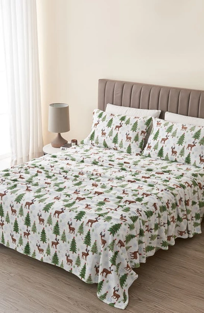 Printed Plush Velour Sheet Set In Deer Trees Snow